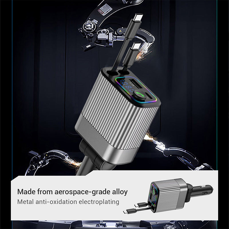 DUBBLA UTDRAGBARA KABLAR – Utrustad med två utdragbara Type-C-laddkablar (stöder PD 20 W snabbladdning) erbjuder denna Bluetooth-mottagare enkel laddning med bara ett drag. Säg adjö till trassliga kablar samtidigt som du får snabbare laddning och snabb batteriåterhämtning för din telefon.