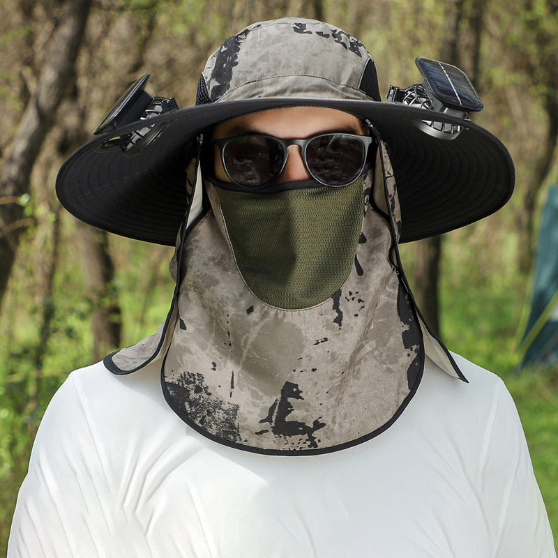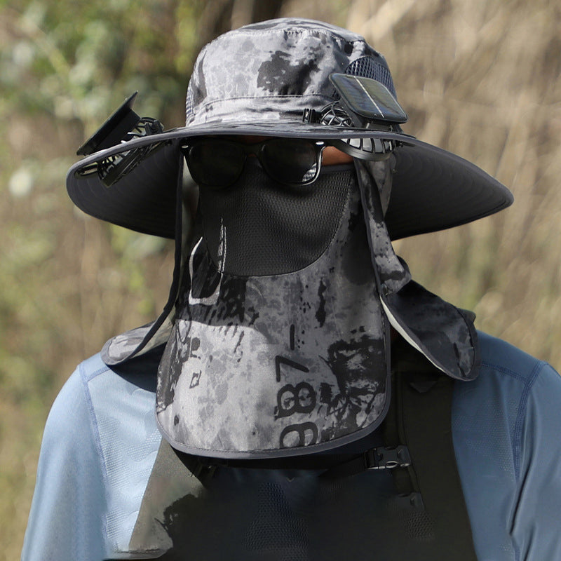 🔥 Bred sida solfläkt utomhus fiskehatt, 🌈 USB-laddning, sval på sommaren!✨