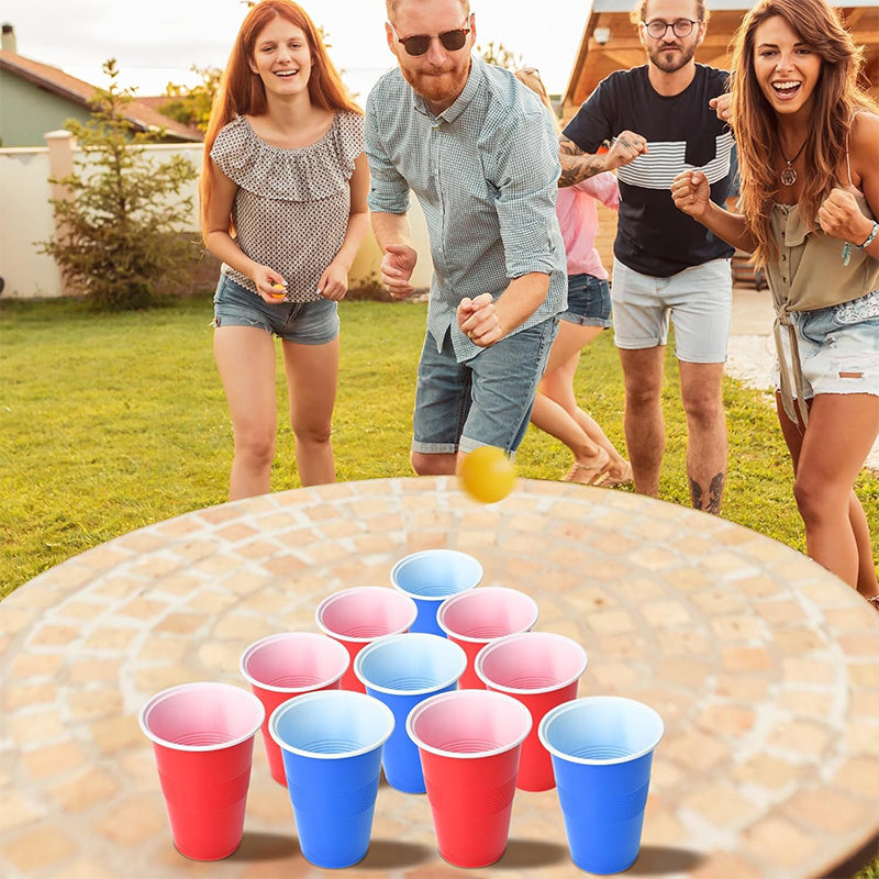 VIBRERANDE FÄRGER, OSLAGBAR HÅLLBARHET – Tillverkade av tålig ABS-plast, dessa koppar tål sprickor och spill. Djärva röda, blå eller klassiska vita bollar syns tydligt mot alla bakgrunder, vilket håller spelet livligt och synligt även i svagt belysta källare eller trädgårdsfester.
