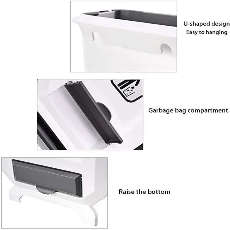 Den hopfällbara och hängande designen sparar mycket utrymme. Den kan fällas ihop när den inte används. Håll hemmet snyggt: eftersom det finns lådor med sopsäckar kan plastpåsarna tas ut och användas när som helst, och avfallet går direkt i soptunnan.