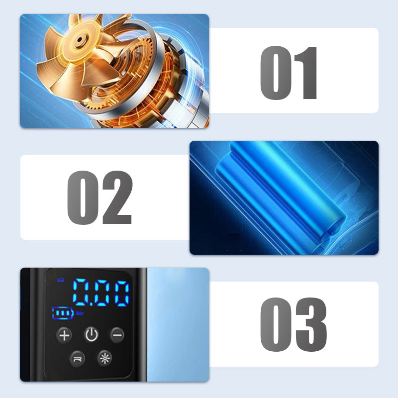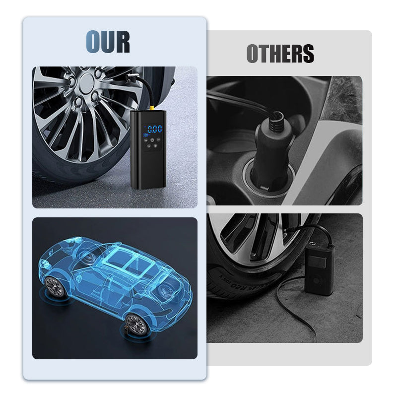 SNABB OCH EFFEKTIV UPPBLà SNINGSFUNKTION: Denna elektriska digitala luftpump Àr utrustad med en kraftfull 17-kolvsteknik som blÄser upp dÀck 33% snabbare Àn traditionella pumpar. Oavsett om du Àr pÄ vÀg eller hemma, minskar den vÀntetiden avsevÀrt och sÀkerstÀller att du kan fortsÀtta din resa sÄ snabbt som möjligt.