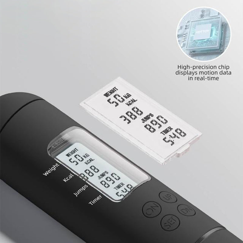 HD DISPLAY WITH BEEPING ALERT - Featuring an easy-to-read LCD screen, the jump rope clearly displays your workout metrics, including jump count, time, and calories burned. With a beeping alert system, you’ll stay notified of your progress without needing to constantly check the screen.