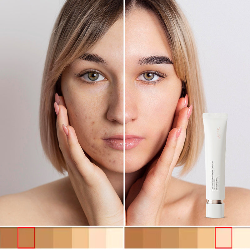 ALLT-I-ETT HUDVÅRD OCH MAKEUP - Kombinerar fördelarna med en fuktkräm, primer och tona-up kräm i en produkt, effektiviserar din hudvårdsrutin genom att ge flera fördelar i ett enda steg, sparar tid och minskar behovet av flera produkter.