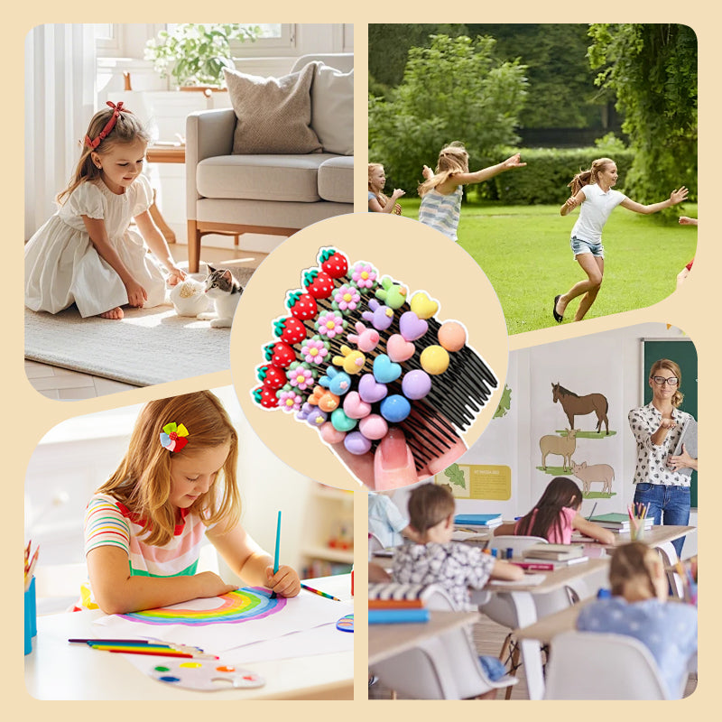 SĂT TIDNINGSMĂNSTER - HĂ„rklĂ€mman Ă€r designad med lekfulla tecknade mönster eller djurformer som jordgubbar och kaniner och Ă€r fĂ€rgglad och charmig - vilket gör att den ser mer ut som en rolig leksak Ă€n bara en hĂ„raccessoar och uppmuntrar barn att bĂ€ra den med glĂ€dje.