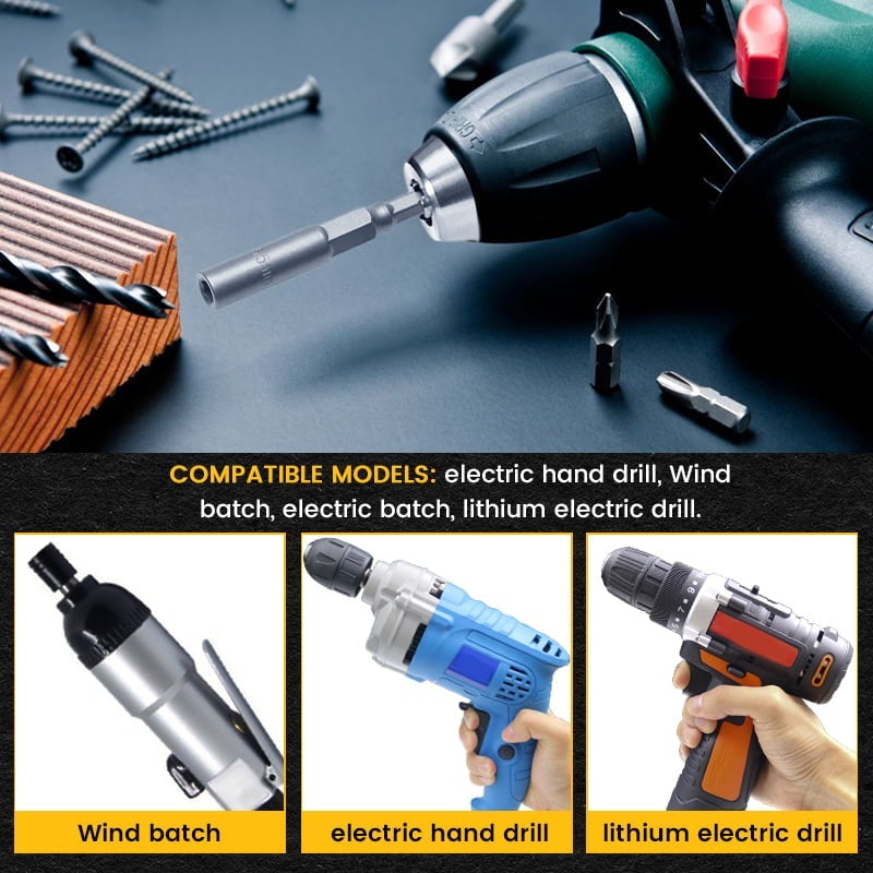 Kompatibla modeller: Fördjupad hylsa, idealisk för att hantera längre skruvar och bultar, men fungerar även utmärkt för vanliga korta bultar. Den är lämplig för de flesta handelektriska handborrar, vindbatch, elektriska batch, litiumelektriska borrar.