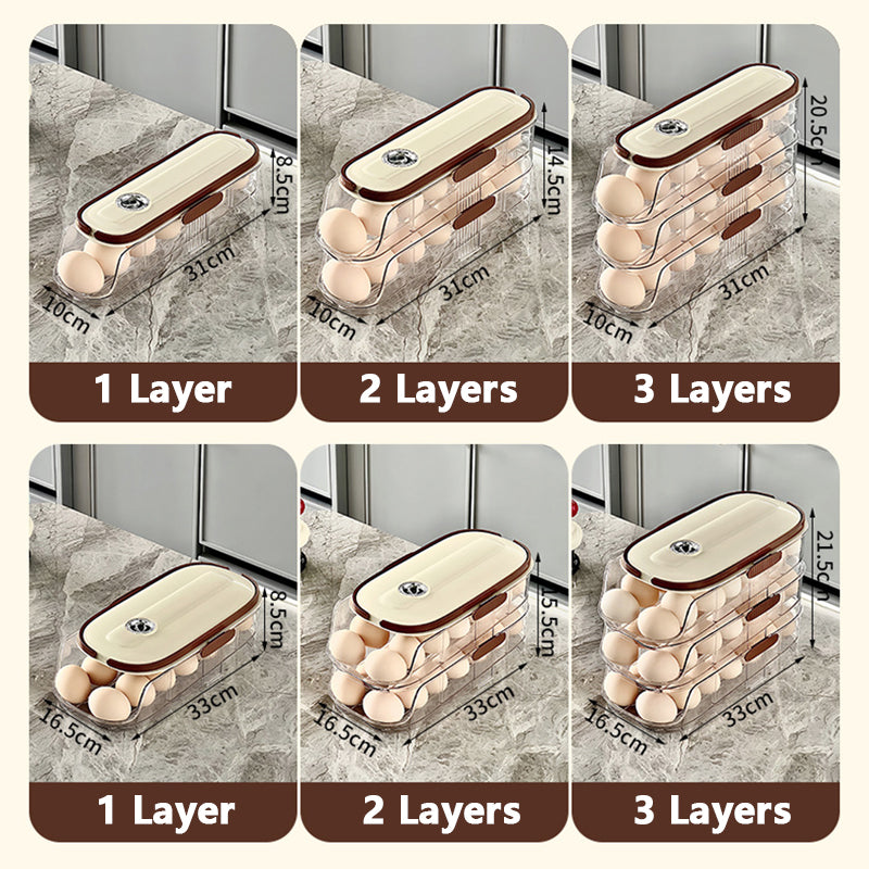 REGISTRERING AV FĂRSKHET: Knappen för registrering av lagringstid gör det enkelt att mĂ€rka nĂ€r dina Ă€gg placerades i organisatören. Den genomskinliga plastkonstruktionen erbjuder utmĂ€rkt synlighet, sĂ„ att du snabbt kan se hur mĂ„nga Ă€gg du har kvar, vilket minskar matsvinn och onödiga affĂ€rsbesök.