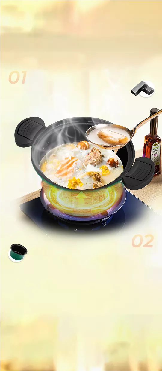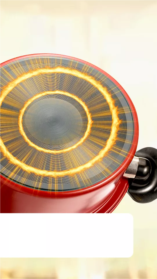 VÀrmen fördelas jÀmnt i grytan, med avancerad temperaturkontrollteknik för att uppnÄ snabb uppvÀrmning.