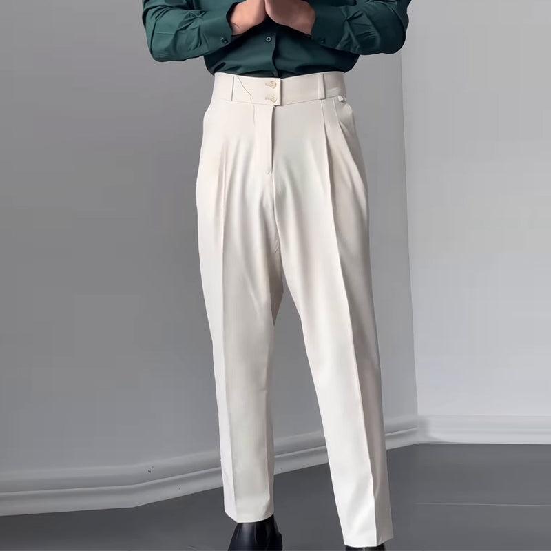 TIDIG DESIGN: Dessa dressade byxor är gjorda för den moderna gentlemannen och har en klassisk businessestetik med veckad front, bälteshällor för en säker passform och tvåknappsstängning. De dolda fickorna ger en snygg silhuett samtidigt som de är praktiska.