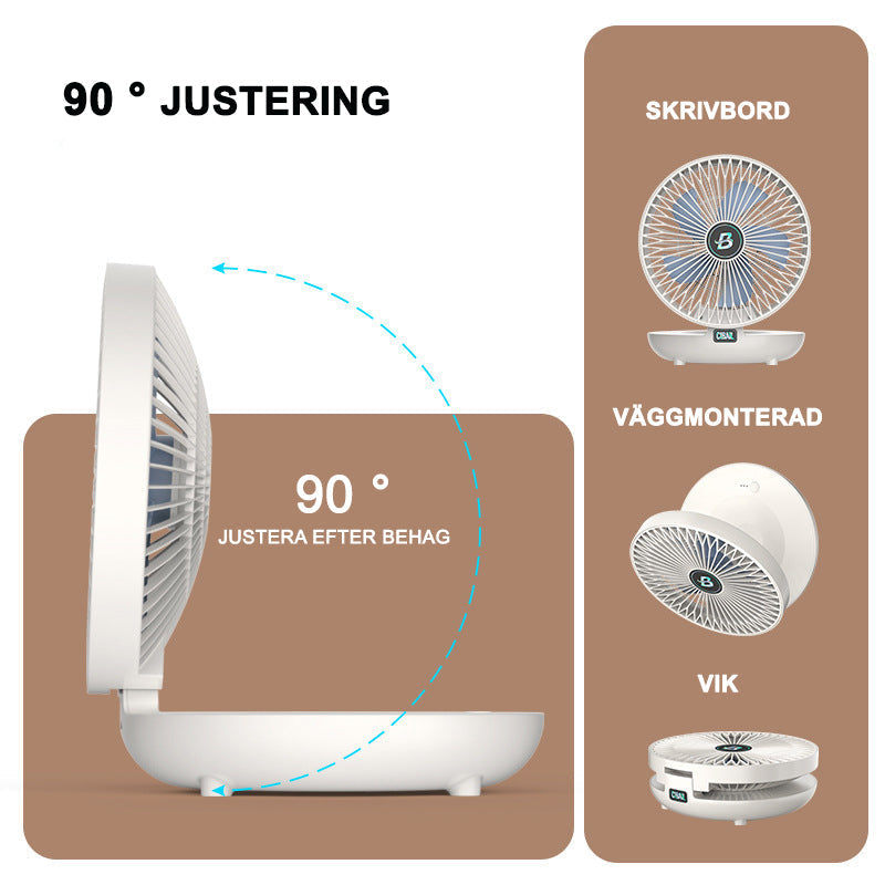 ENERGIBÄRBAR: Luftcirkulationsfläkten för hela rummet hjälper dig att spara energi genom att öka luftflödet och låta ditt rum cirkulera luft snabbare. Kraftfullt återcirkulerande luftflöde med flera riktningar fördelar varm och kall luft snabbare och sparar pengar. Denna tysta fläkt är vikbar och lätt för enkel förvaring, du kan lägga den i din ryggsäck, strandväska eller resväska, lämplig för olika tillfällen, oavsett om det är hemma eller utomhusaktiviteter, såsom picknick, resor, camping, BBQ.