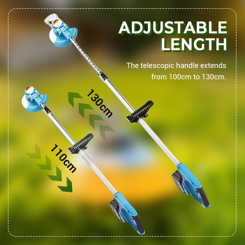 JUSTERBAR LĂNGD - Teleskophandtaget kan förlĂ€ngas frĂ„n 100 cm till 130 cm. Denna funktion minskar belastningen pĂ„ rygg och armar och gör det lĂ€ttare att ta itu med svĂ„rĂ„tkomliga omrĂ„den som under buskar eller lĂ€ngs staket. Dessutom passar den kompakta storleken utan problem i bilens bagageutrymme.