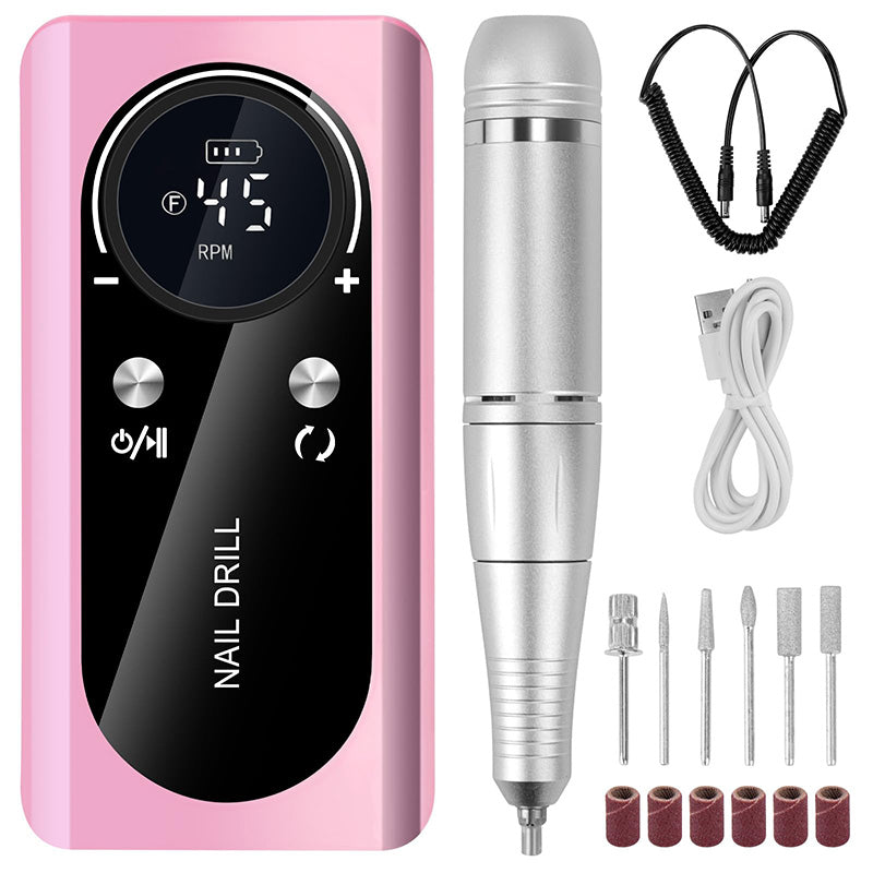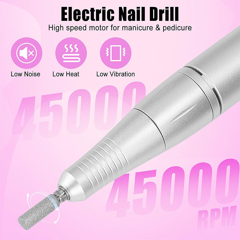 KRAFTIG HÖGFREKVENS MOTOR MED JUSTERBAR HASTIGHET – Utrustad med en motor som går upp till 45 000 RPM får användarna stark och konsekvent kraft för effektiv nagelformning och polering. Motorn arbetar tyst och utan överdriven värme, vilket förbättrar användarupplevelsen samtidigt som den behåller optimal prestanda för olika nagelvårdsuppgifter.