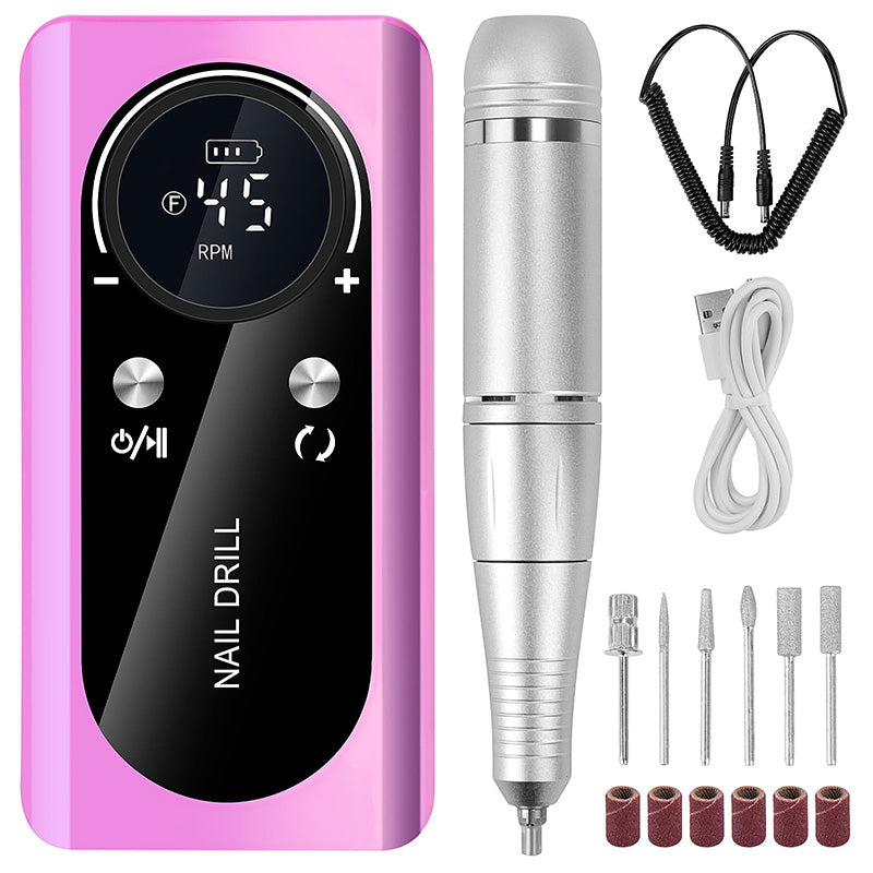 INTUITIVT ANVÄNDARGRÄNSSNITT MED TÄNKBART LCD-SKÄRM – Detta set erbjuder enkel kontroll med en LCD-skärm som visar ström, hastighet och rotationsriktning. Strömbrytaren stödjer långtryck för att slå på, stänga av eller pausa, vilket möjliggör smidig hantering. Användare kan enkelt växla mellan vänster och höger rotationsriktning för exakt nagelvård utan förvirring.