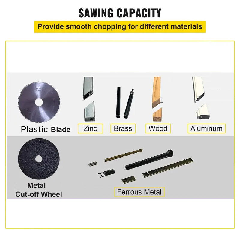 MĂ NGSIDIG MATERIALSKĂRNING â Denna precisa mini-bordsĂ„g skĂ€r enkelt igenom en rad olika material, inklusive plast, trĂ€, sten och metaller som koppar och aluminium. Den kraftfulla motorn levererar jĂ€mn prestanda pĂ„ olika material, vilket gör den idealisk för DIY-projekt, smĂ„skalig trĂ€bearbetning och till och med lĂ€tta industriella tillĂ€mpningar. FörmĂ„gan att hantera bĂ„de icke-jĂ€rnmetaller och jĂ€rnmetaller utökar dess anvĂ€ndbarhet utöver traditionella sĂ„gar, vilket sparar dig behovet av flera specialverktyg.