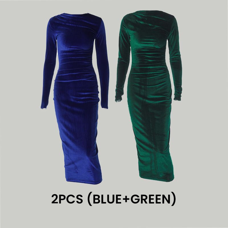 1 * Kvinnors mode enfÀrgad lÄngÀrmad slimmad klÀnning