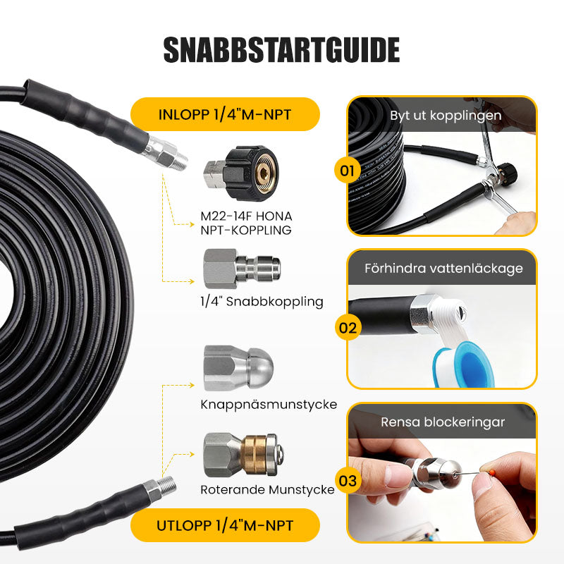 💦50% RABATT OMEDELBART🚿5800PSI avloppsrensningssats🔧Högtrycksmunstycke och slang för igensatta avlopp/rör, kompatibel med de flesta högtryckstvättar📦