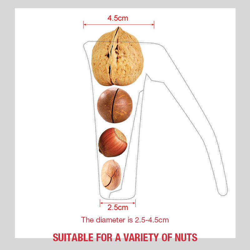 - Ergonomisk design och överlÀgsen teknik kan hjÀlpa dig att snabbt knÀcka det hÄrda skalet. Trevlig och praktisk, ingen skada pÄ handen nÀr du skalar nötter.