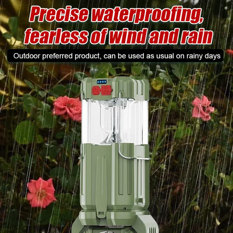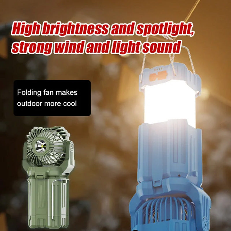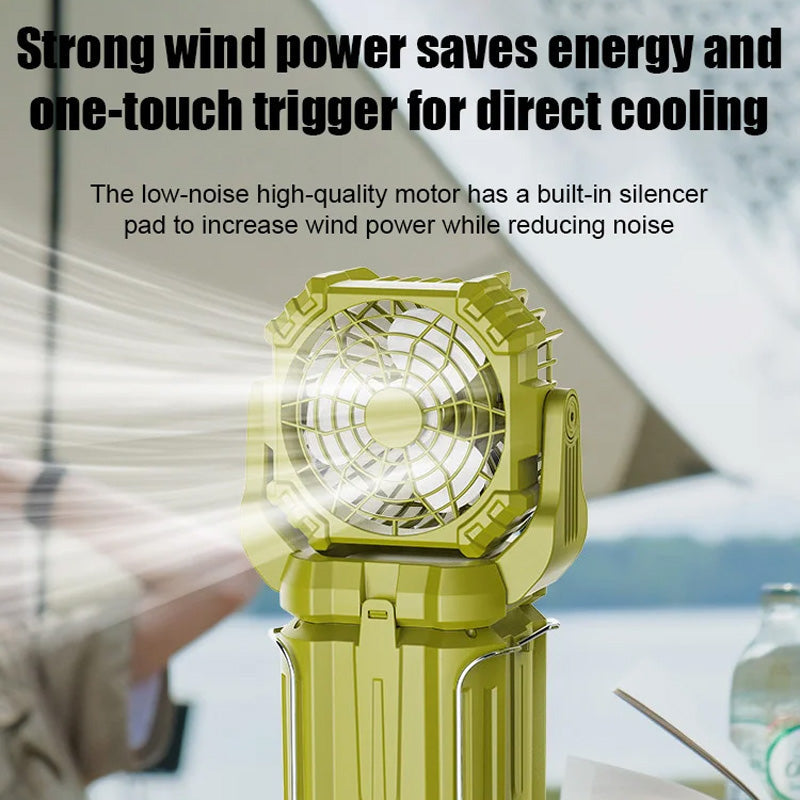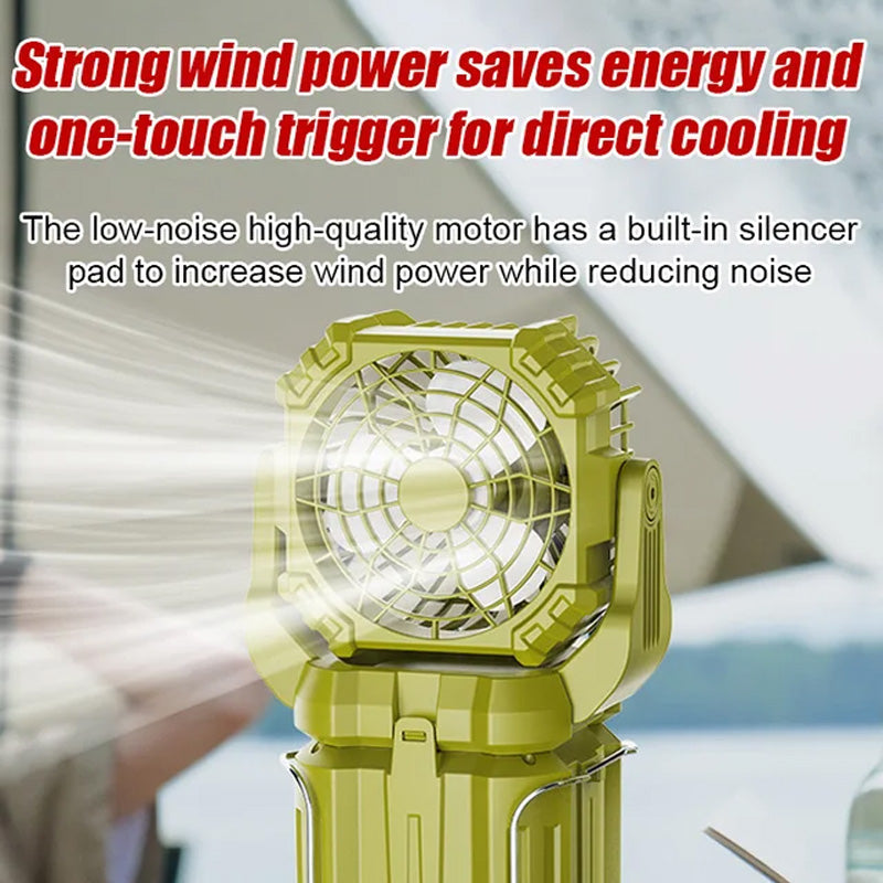 TVÅFUNKTIONSGENIALITET – Ultra-starka LED-strålar (100–200 m räckvidd) lyser upp mörkret, medan den tysta turbofläkten ger svalkande luftflöde. Växla läge direkt – lys upp stigar, koppla av vid tältet eller anordna trädgårdsfester. Två funktioner i en robust enhet!