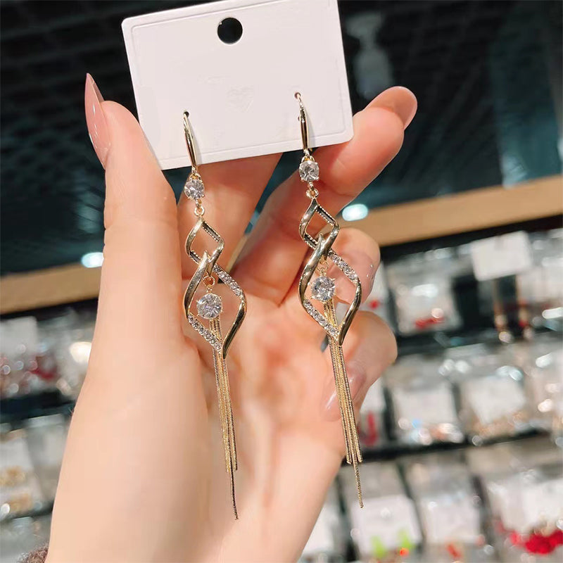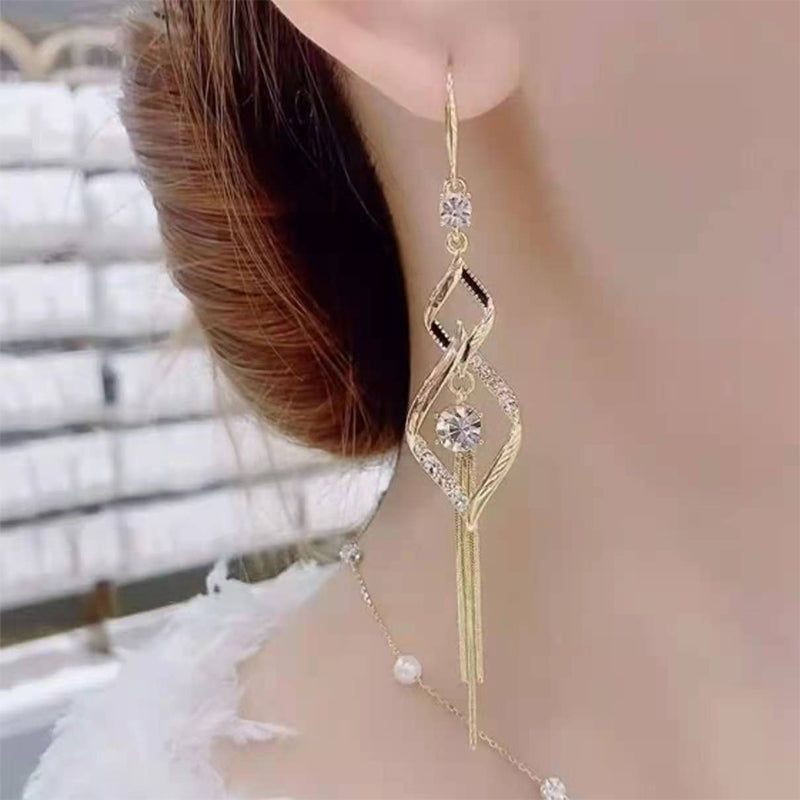 GLAMORÖS DESIGN – De Glittrande Dubbla Strassörhängena har en fantastisk spiraldesign som elegant faller ner för att skapa en fängslande look. Med en längd på cirka 13 cm gör dessa örhängen ett djärvt uttalande samtidigt som de är lätta och bekväma att bära.