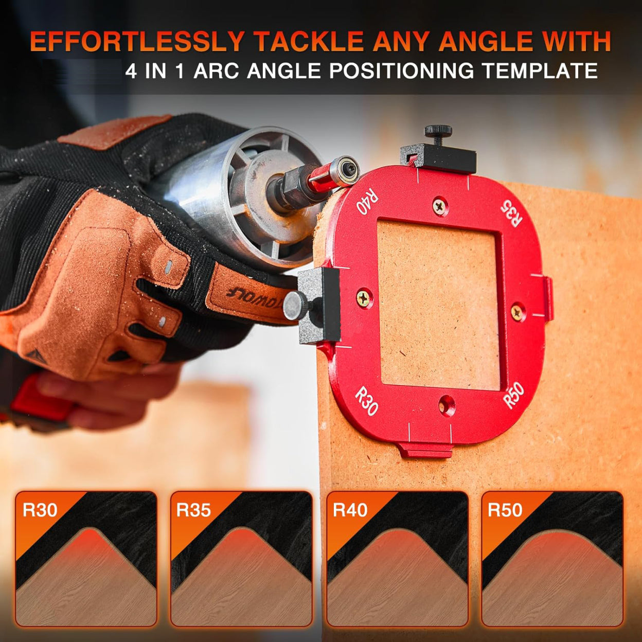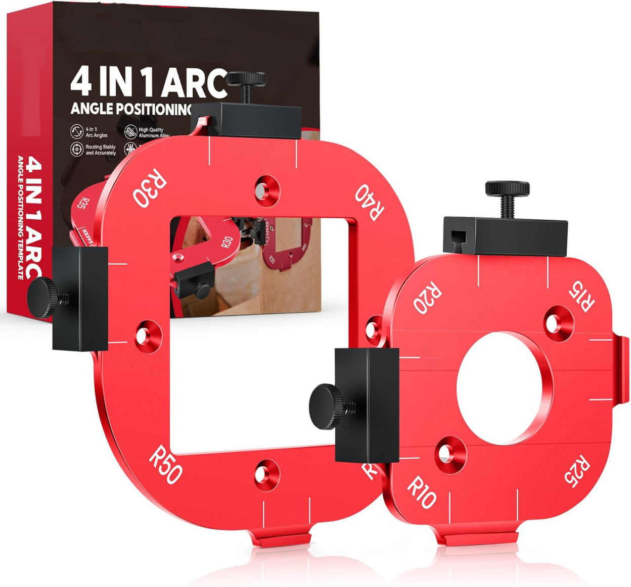 Kompakt och bärbar: 4 i 1 bågvinkelpositioneringsmall är designad för bekvämlighet. Dess lätta och bärbara karaktär gör att du enkelt kan transportera den mellan din verkstad och arbetsplatsen. Dessutom säkerställer dess kompakta storlek att den passar bekvämt i din verktygslåda, vilket gör den till ett praktiskt tillägg till din samling av träbearbetningsverktyg.