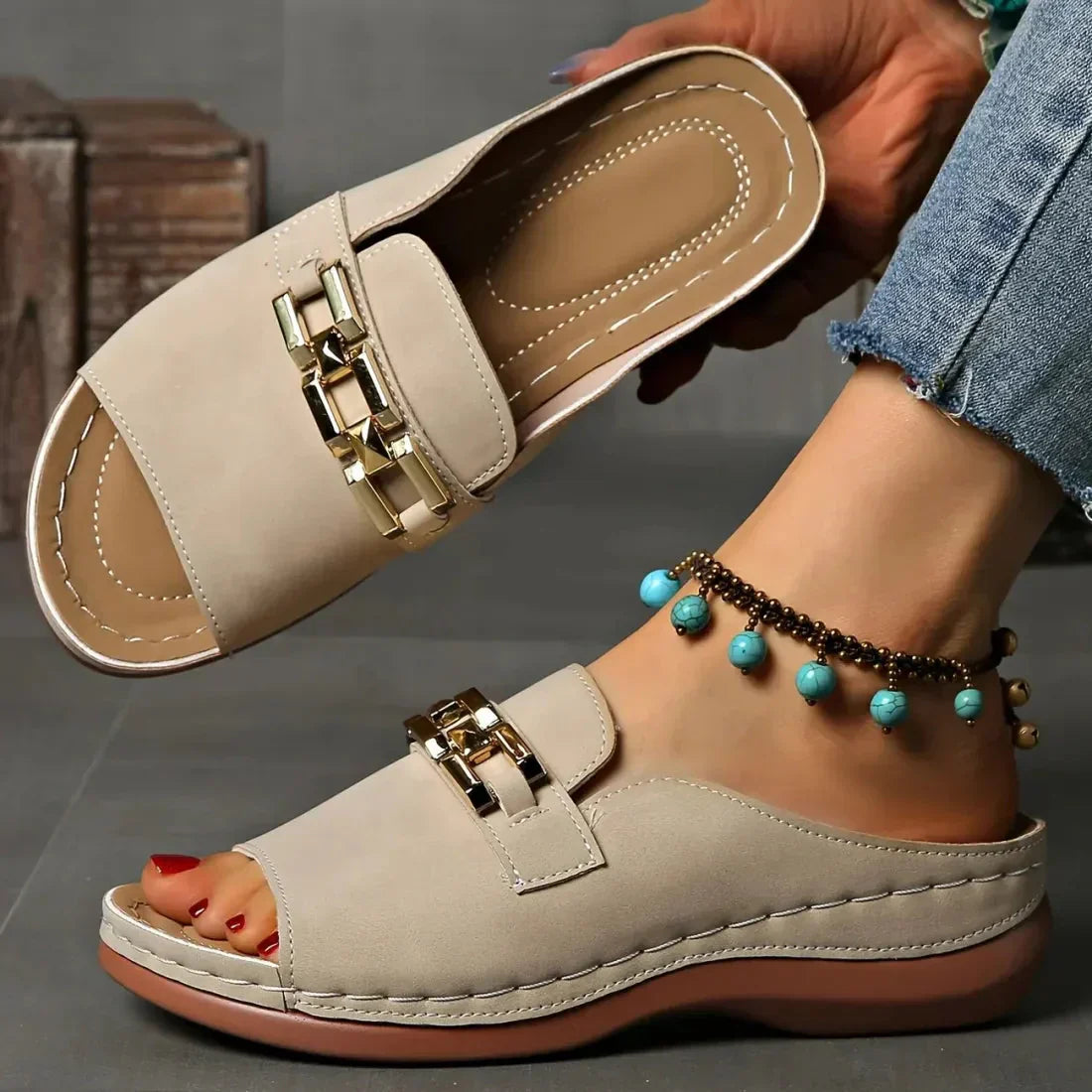 đĄâšOrtopediska sandaler med guldspĂ€nne